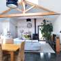 Une pièce de vie de 42 m2 lumineuse, entièrement déplafonnée où il y fait bon vivre avec son poêle à granulés, pour les soirées cocooning.