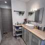 A l’étage, une grande mezzanine vous servira de bureau, de rangement, de salle de jeux…et vous trouverez également une chambre spacieuse et sa salle de bains privative